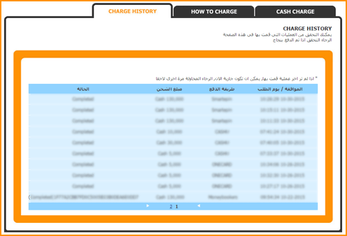 8. يمكنك التأكد من نجاح العملية في صفحة charge history.