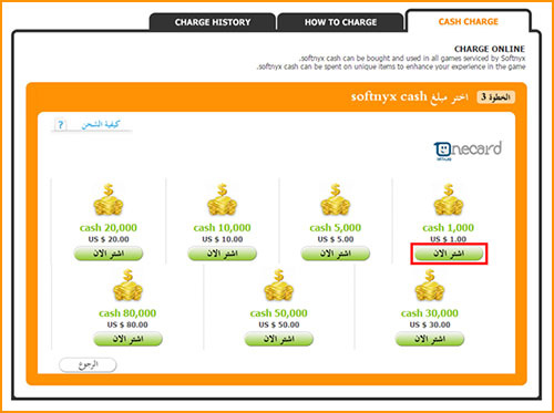 3.اختر مبلغ الكاش ثم اضغط على "اشتر الان"