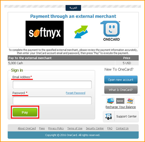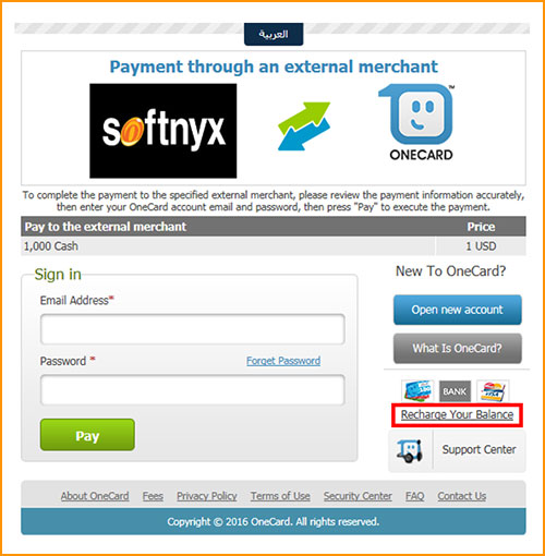 * اذهب الى صفحة فواتير Softnyx للدفع بعد الشحن