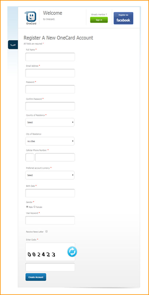انتظر! الا يوجد لديك حساب في ون كارد؟